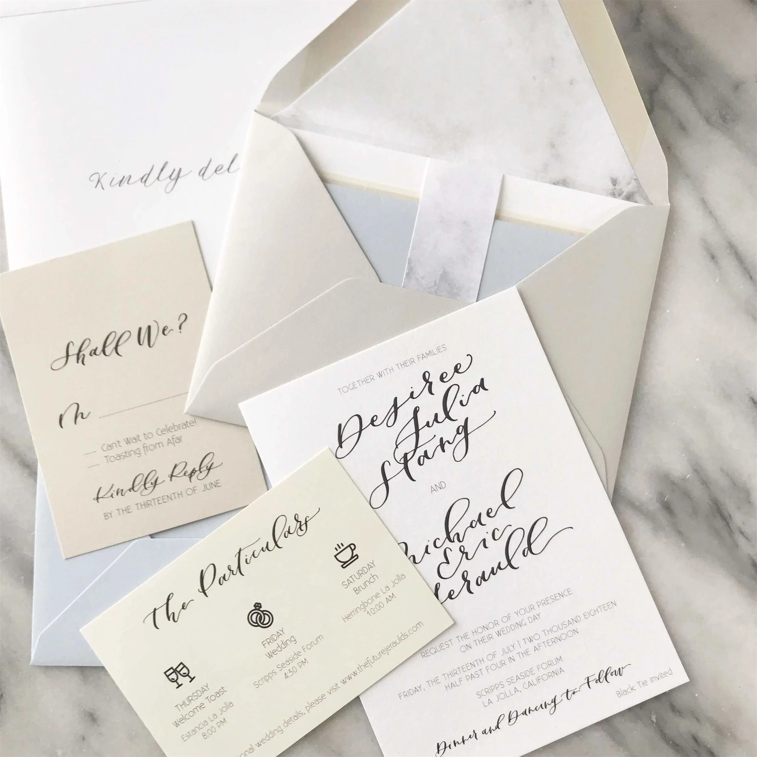 Modern Calligraphy Vellum Wrap Wedding Invitation Suite With White Wax Cartalia